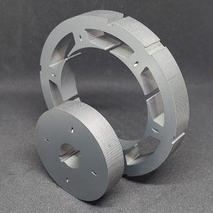 A stator-rotor lamination stack in industrial fans consists of multiple thin sheets of electrical steel pressed together to form the magnetic core components. The stator (stationary outer portion) and rotor (rotating inner portion) work together to convert electrical energy into rotational mechanical energy. Engineered with specialized coatings and high-grade silicon steel, these lamination stacks withstand harsh industrial conditions including extreme temperatures, corrosive environments, and constant vibration. The laminated structure minimizes energy losses from eddy currents while providing the necessary magnetic circuit for the fan’s operation. These robust, precision-engineered components are critical for the fan’s efficiency, performance, and long-term durability in demanding industrial applications.
